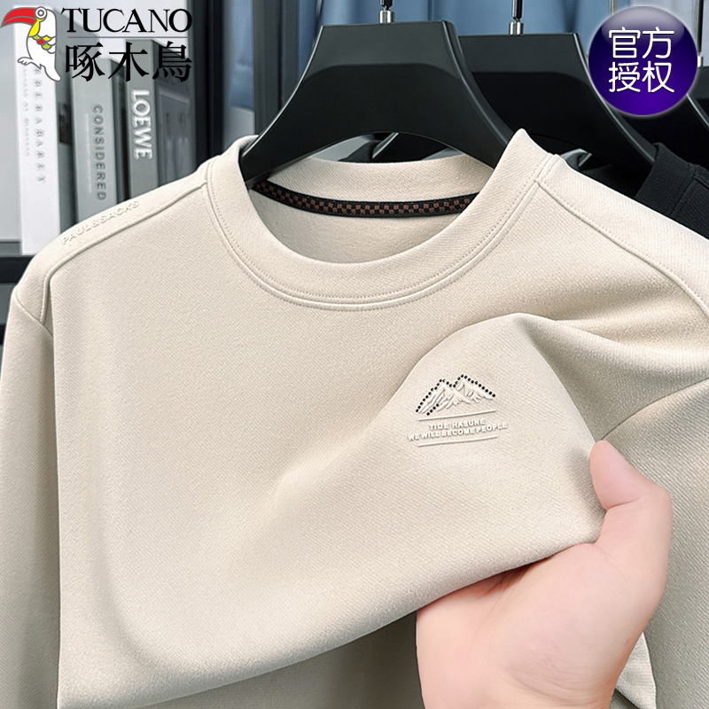 啄木鸟圆领卫衣男纯色打底衫上衣