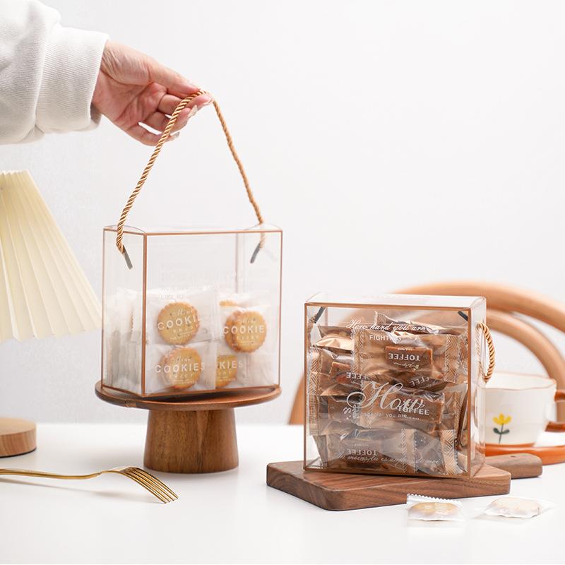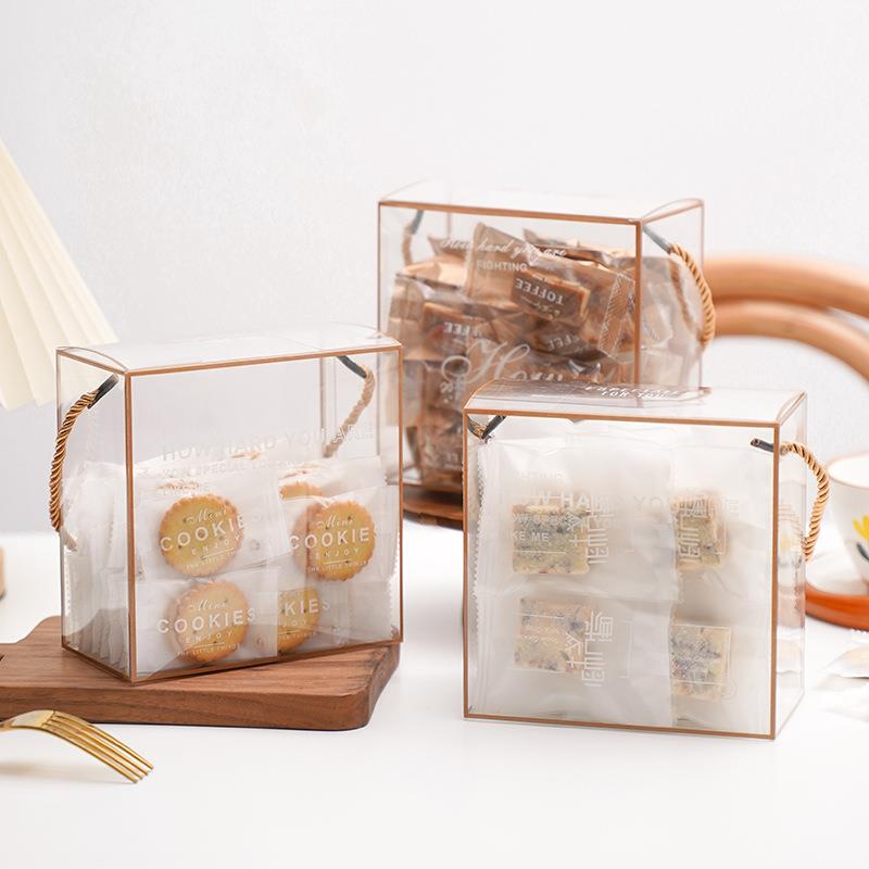 新年款透明手提盒饼干糖果巧克力雪花酥曲奇包装盒简约礼物糖果盒