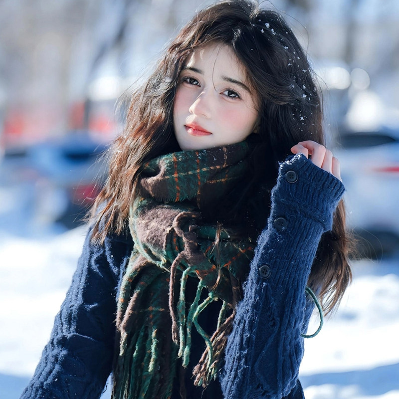 稻草人格子围巾女冬季2025新款韩系氛围感百搭围脖高级感保暖披肩