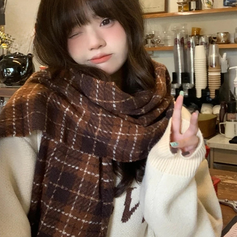 稻草人格子围巾女冬季2025新款