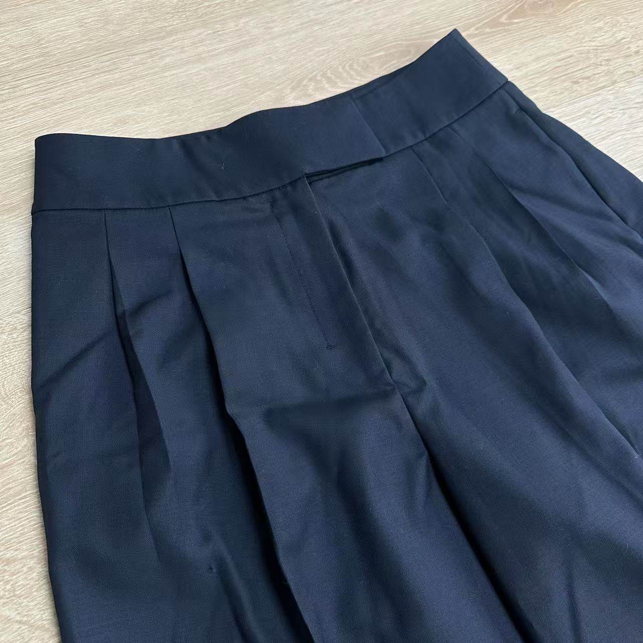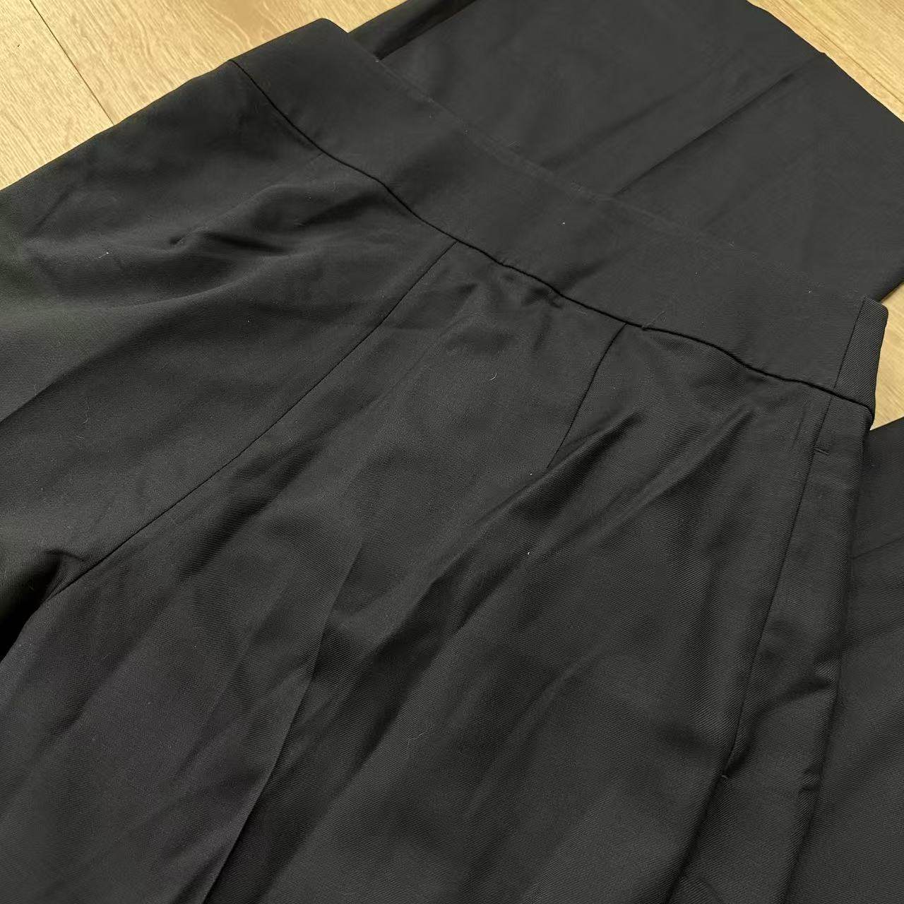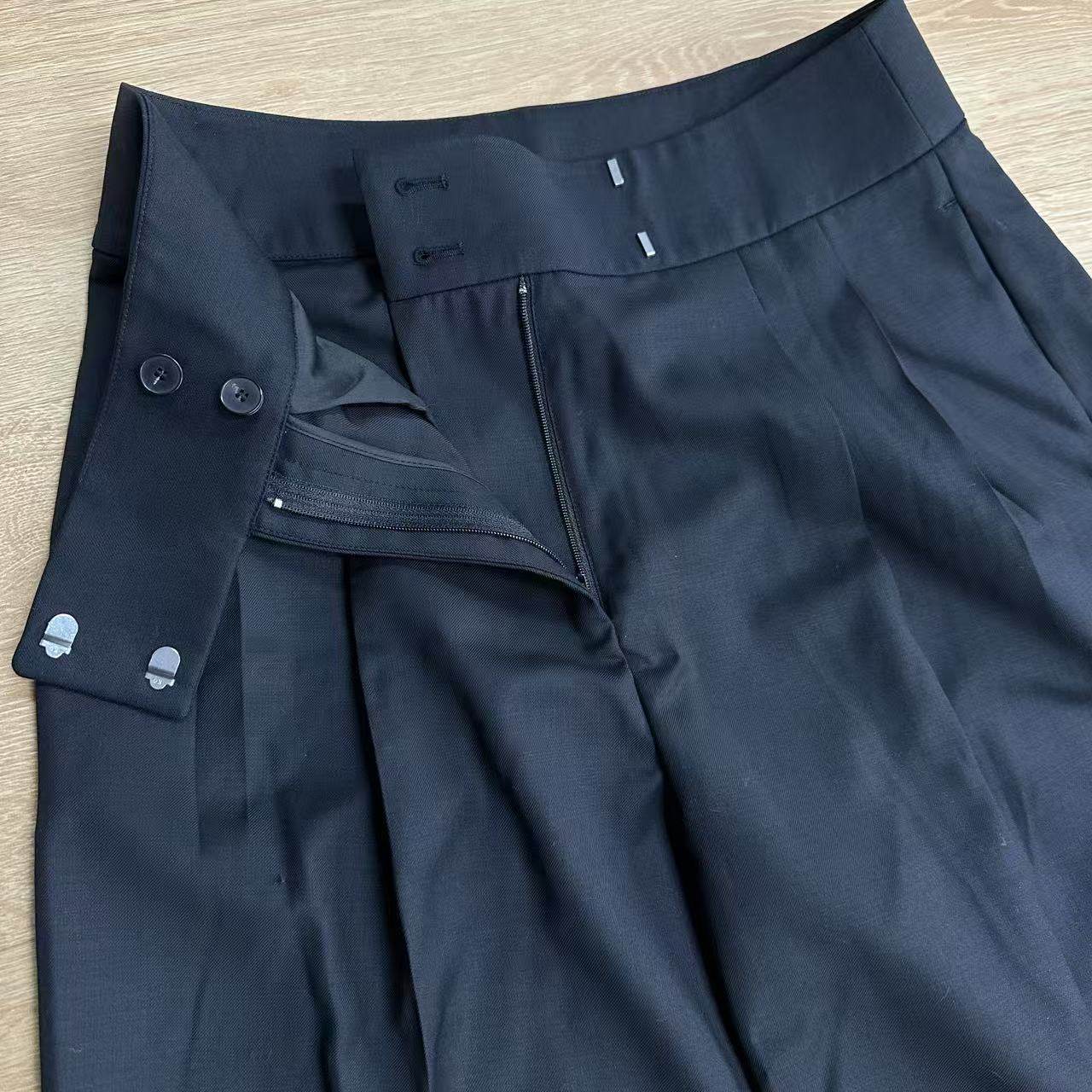 小众早秋藏黑色打褶阔腿休闲西装裤(25041202)