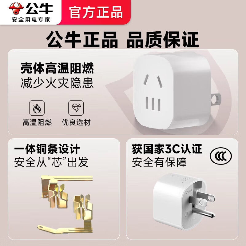 公牛反向三脚转换器插头两插转2孔转3脚转向器向上拓展倒三角插座