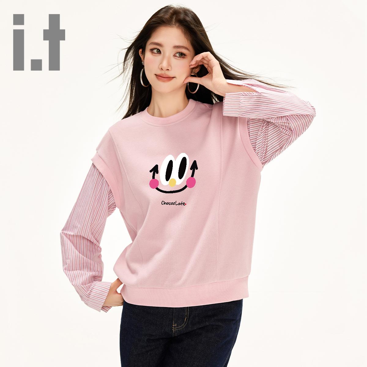 it:CHOCOOLATE春季新款圆领卫衣女假两件宽松休闲百搭长袖上衣K