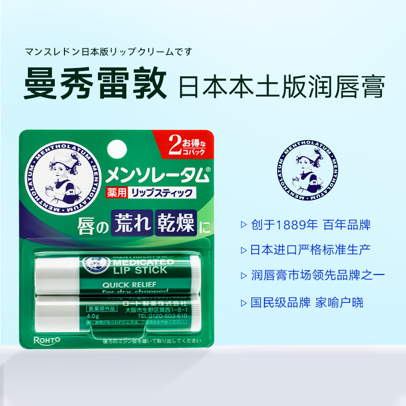 【自营】日本曼秀雷敦唇膏女高保湿滋润防干裂薄荷男士成人润唇膏