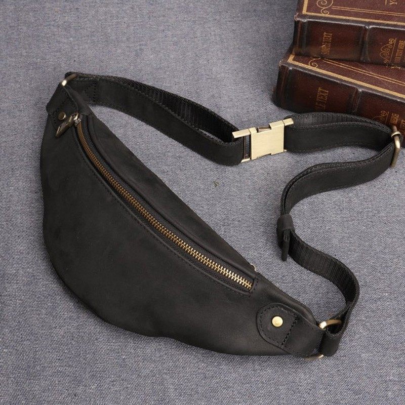韩版潮真皮男胸包疯马皮时尚手机包头层牛皮斜挎腰包街头个性小包