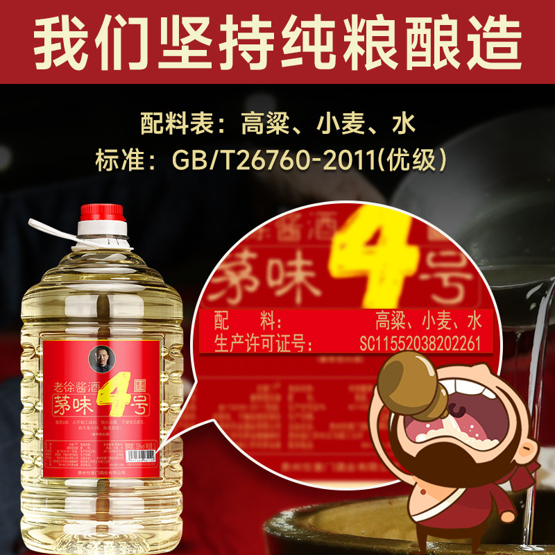 茅味4号 贵州茅镇酱香型白酒纯粮食酒十斤桶装53度大曲坤沙高粱酒