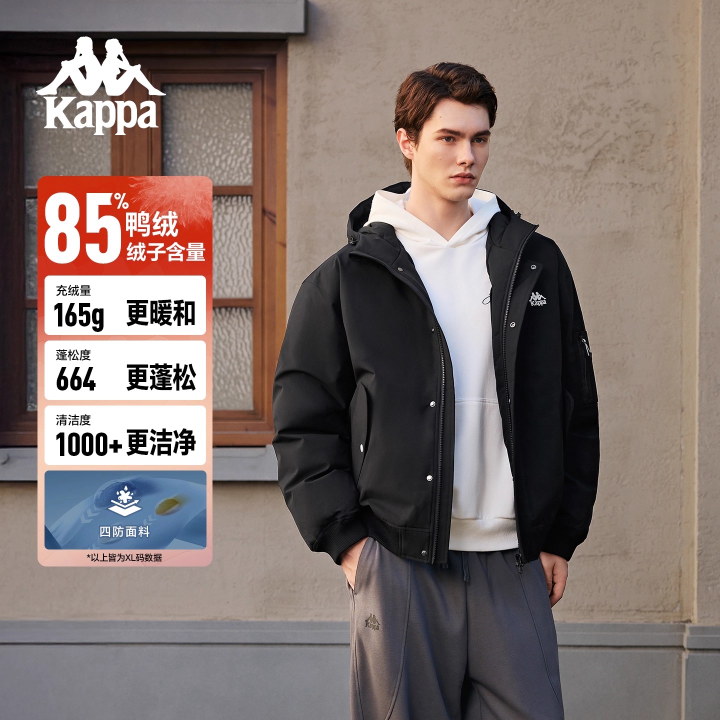 Kappa卡帕连帽羽绒服男女款2025冬季新款情侣防风保暖派克服外套