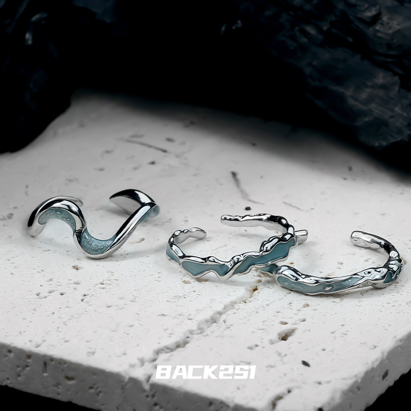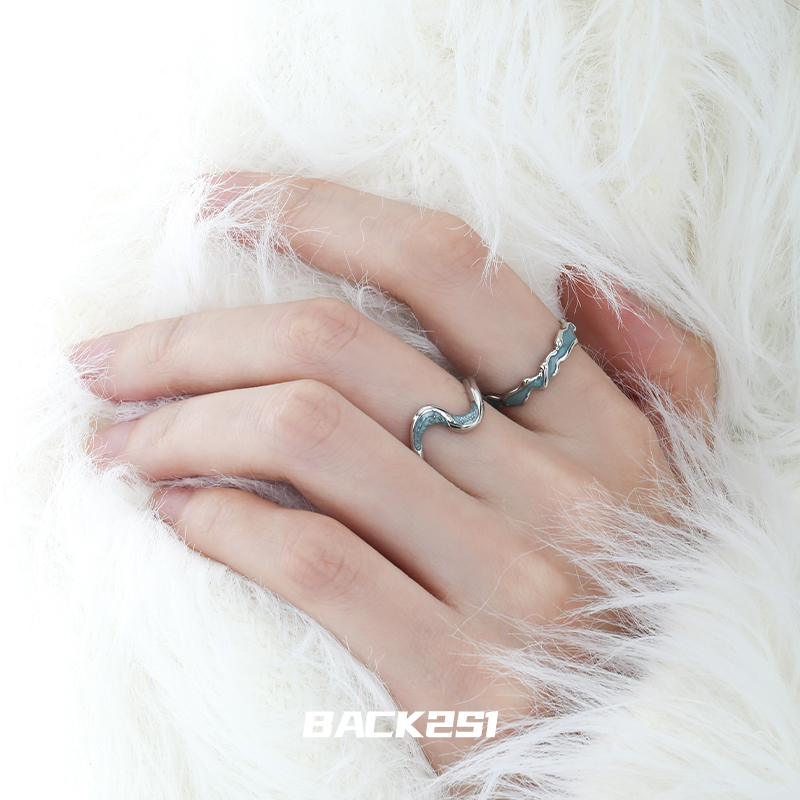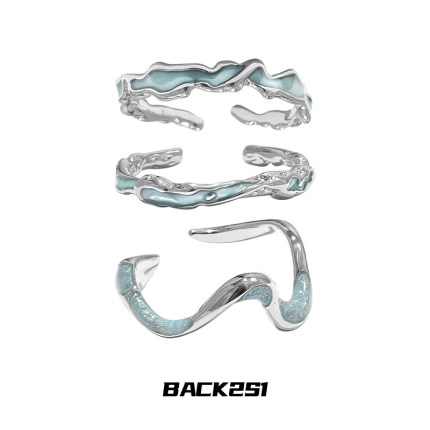 小众设计冰蓝海域叠戴戒指女冷淡风高级感开口潮酷食指套戒送礼物