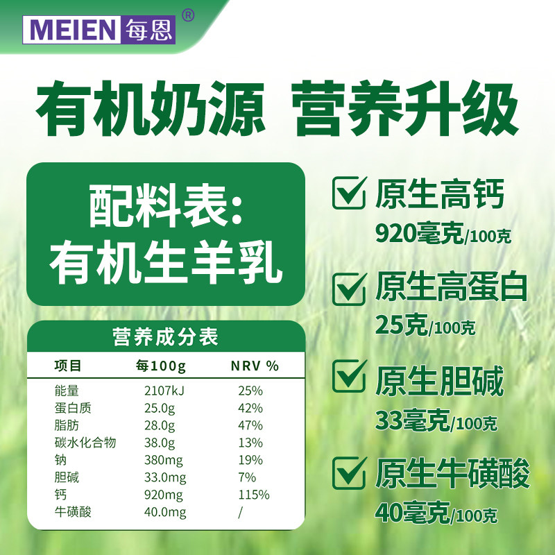每恩有机纯羊奶粉高钙高蛋白陕西富平全脂羊奶粉官方旗舰店正品