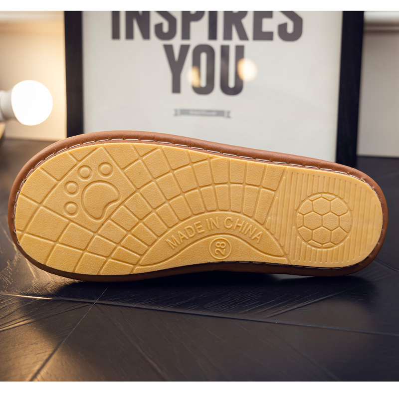 新款牛皮面防水男士秋冬季居家用带绒保暖棉拖鞋牛筋底防滑情侣女