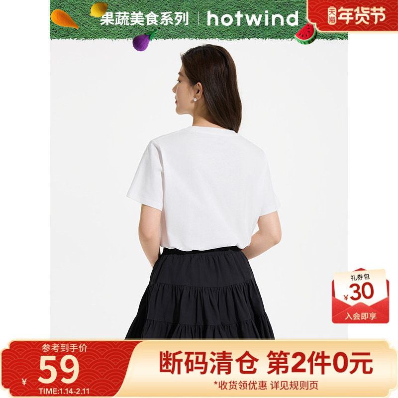 热风女士白色短袖印花T恤2025年夏季新款宽松休闲百搭短袖上衣