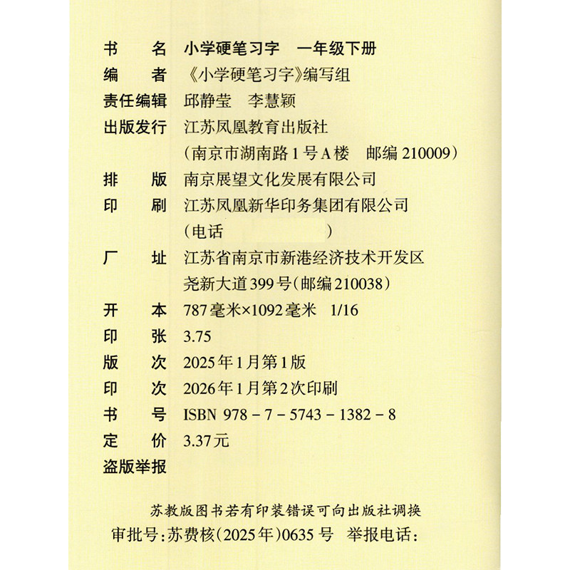 2026年春小学硬笔习字1下 一年级下册 硬笔书法人教版教材配套 写字课课练 写字描红本生字本 小学生练字贴 同步教辅 习字册XGX