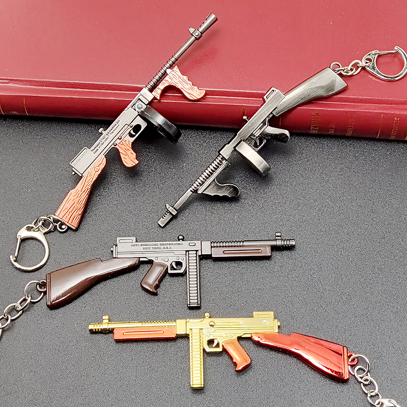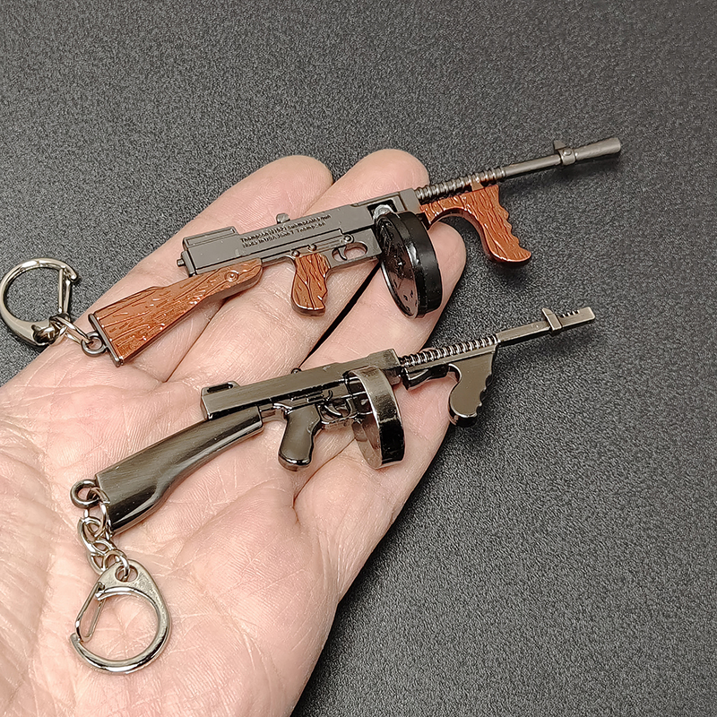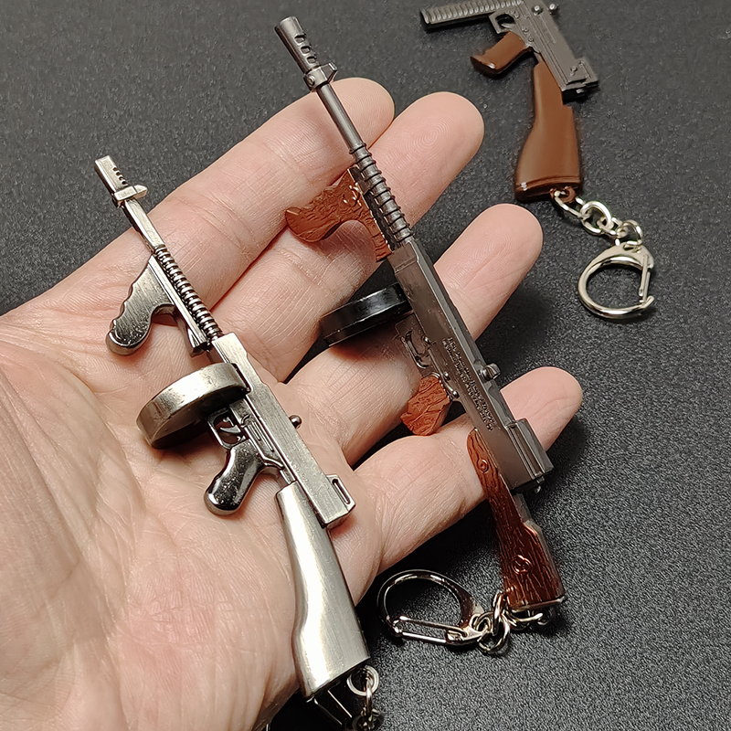 汤姆逊冲锋枪模型钥匙扣射击枪战吃鸡游戏周边汤普森金属挂件摆件