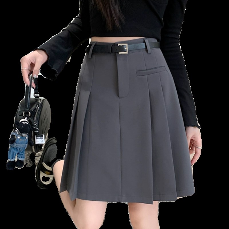 大码高腰灰色百褶裙女中裙春夏学院风防走光短裙设计感a字半身裙