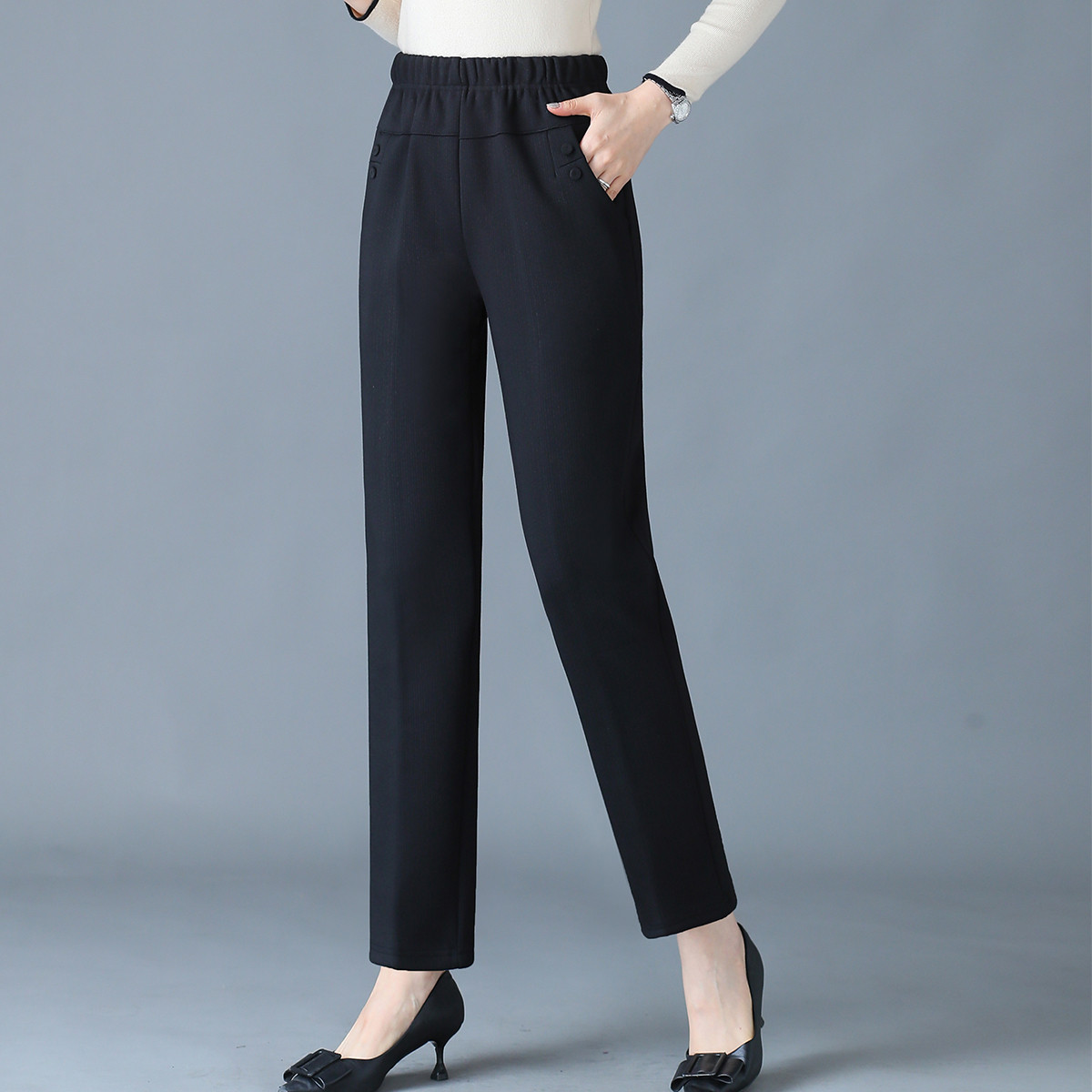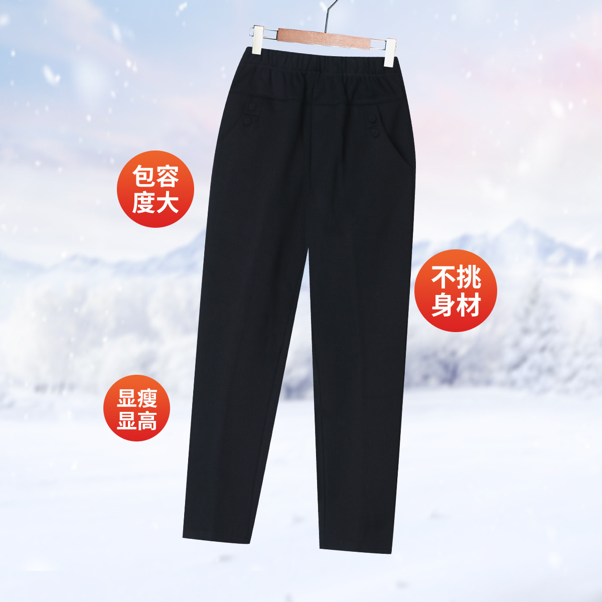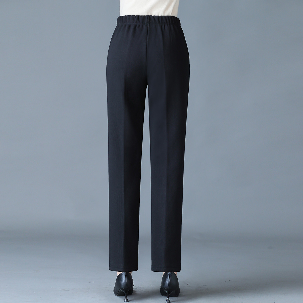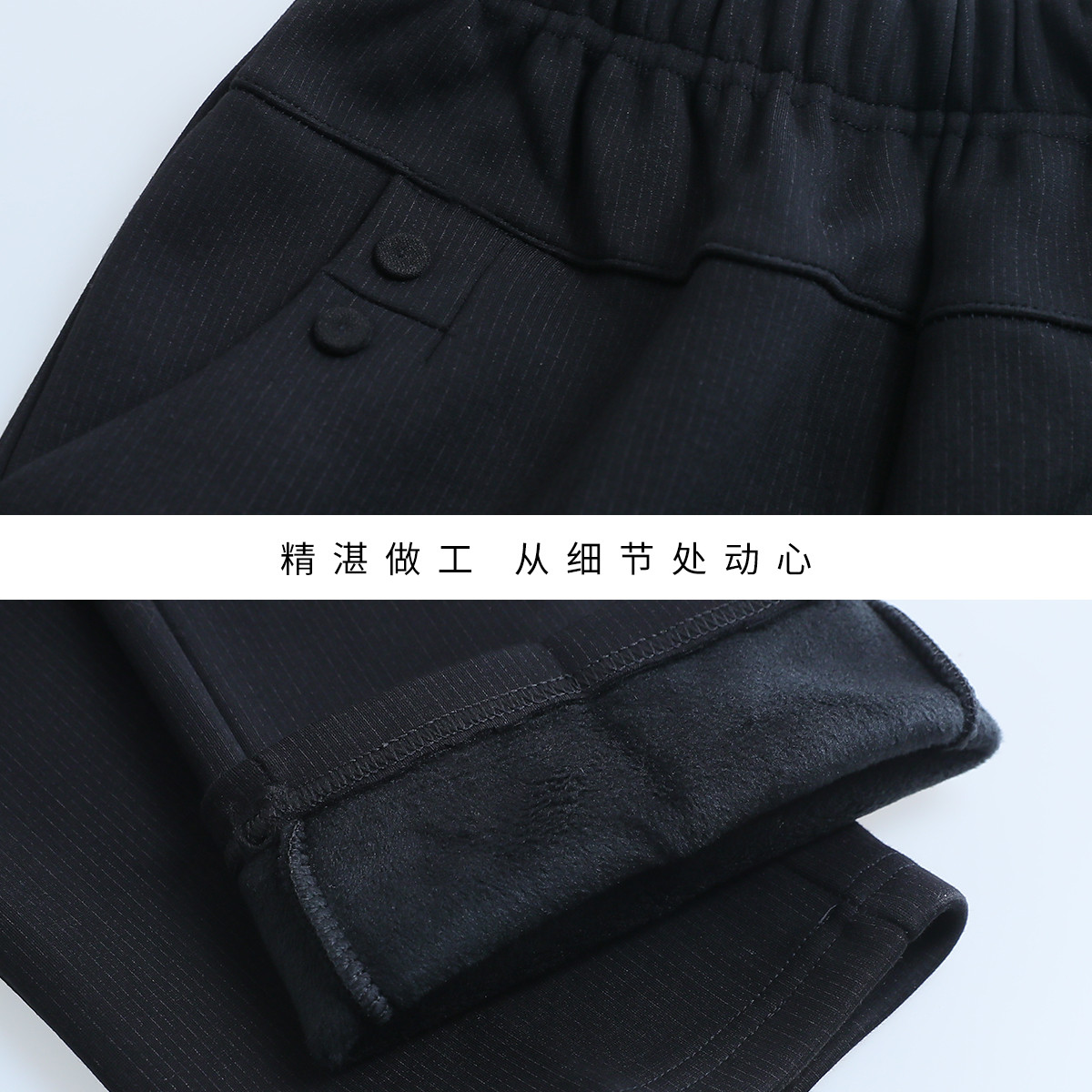 台格条纹休闲裤秋冬季妈妈装中老年女装松紧腰加绒高腰直筒长裤