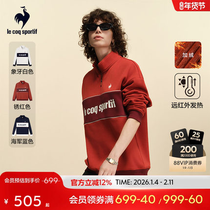 乐卡克法国公鸡秋冬男女同款加绒亲肤舒适立领卫衣红色新年