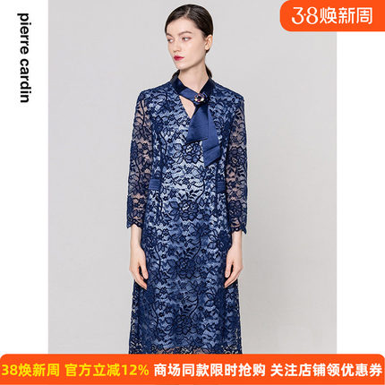 皮尔卡丹女装镂空蕾丝连衣裙