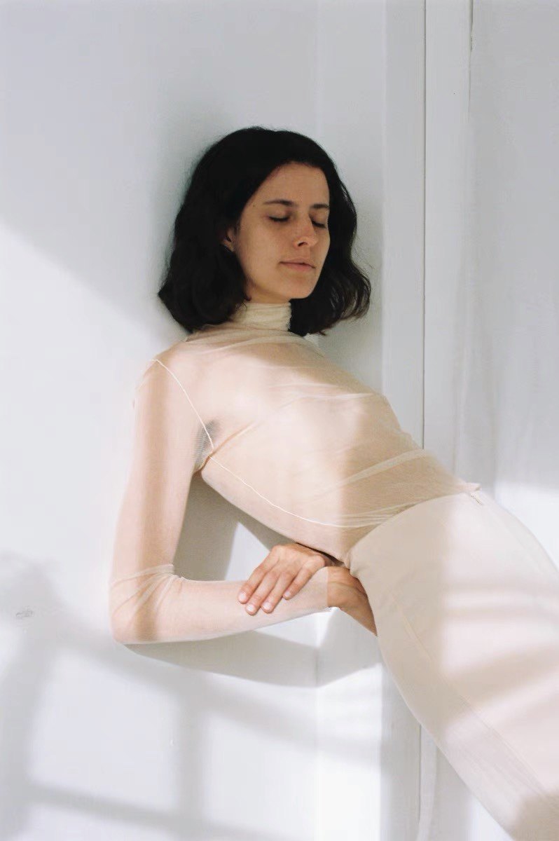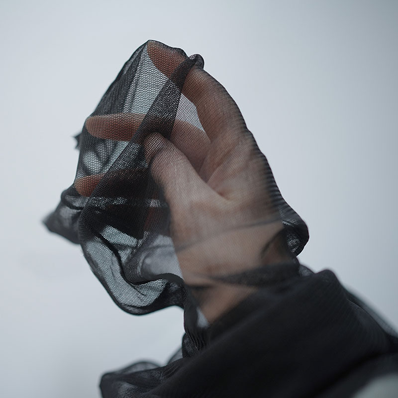 绝绝子 西班牙小众薄如蝉翼黑色真丝网纱透明高领内搭打底衫T恤女