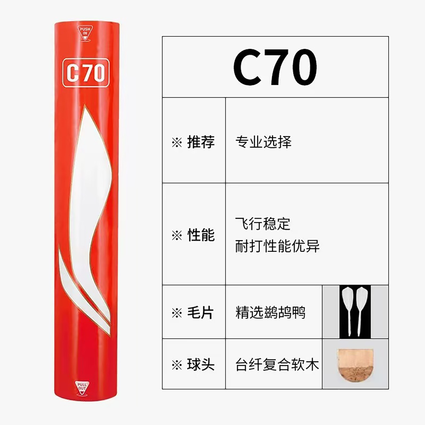 Lining李宁C70羽毛球耐打飞行稳定专业训练球鹚鸪鸭12只装