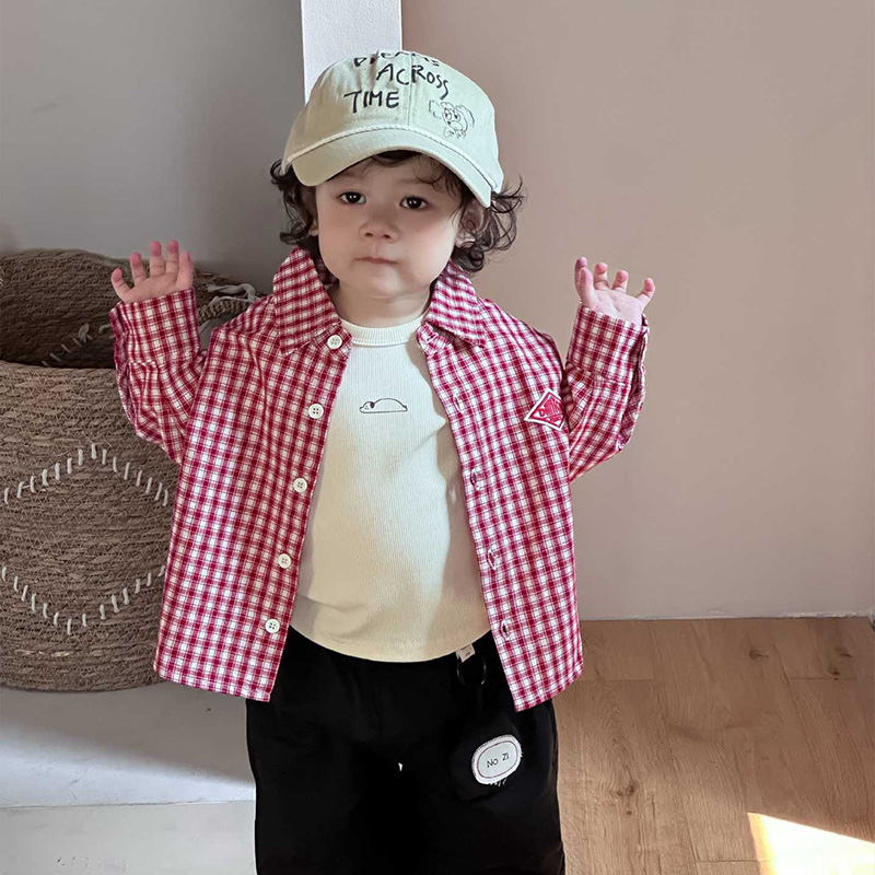 婴儿童衬衫男女宝宝秋季新款红格子外套打底衫长袖长裤套装纯棉潮