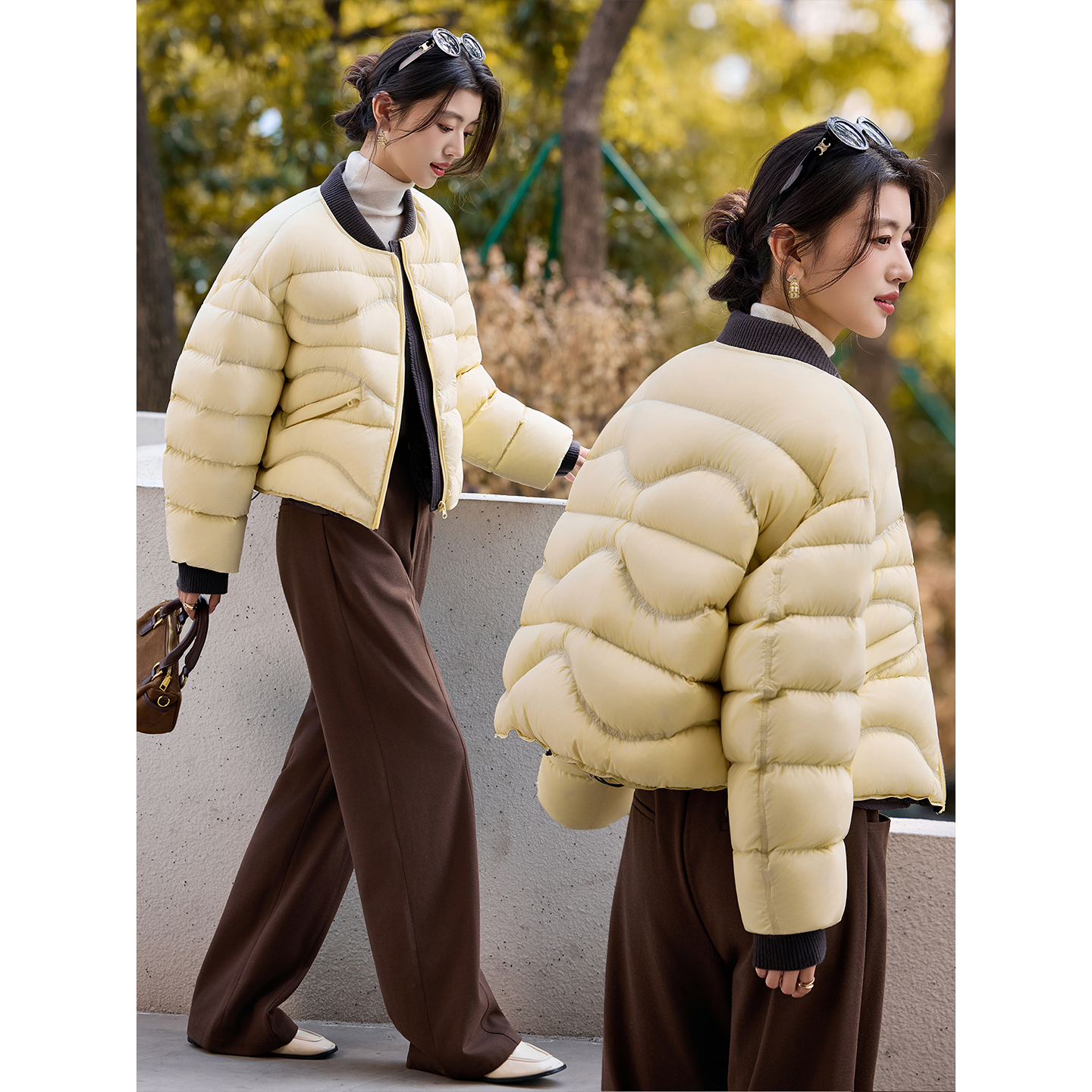 巨好看的冬装外套蓝色排骨针织领轻薄羽绒服2025冬季新款短款棉袄