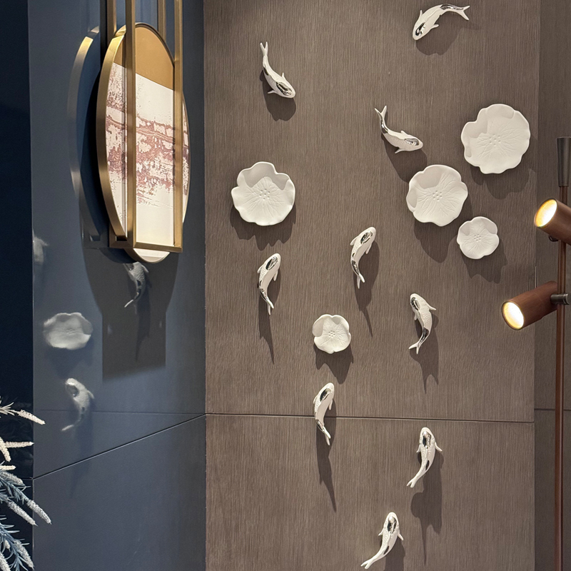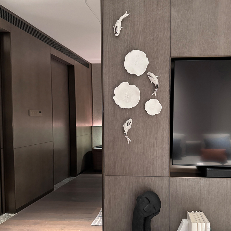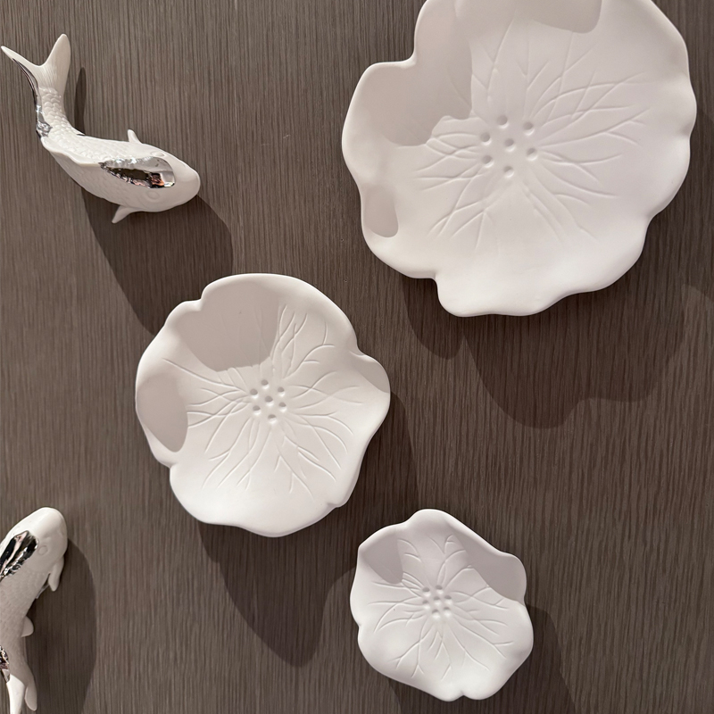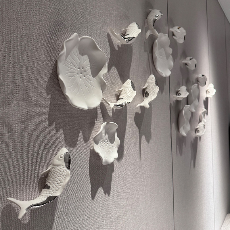 现代创意中式陶瓷荷叶锦鲤壁饰电视墙客厅餐厅庭院装饰挂鱼陶瓷鱼