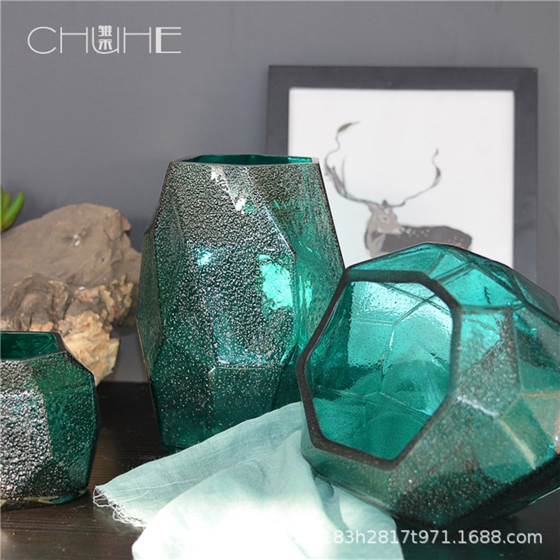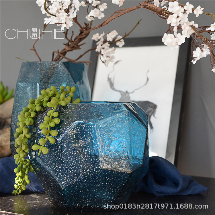 多面玻璃花瓶美式欧式家居装饰摆件插花花器时尚礼品花瓶