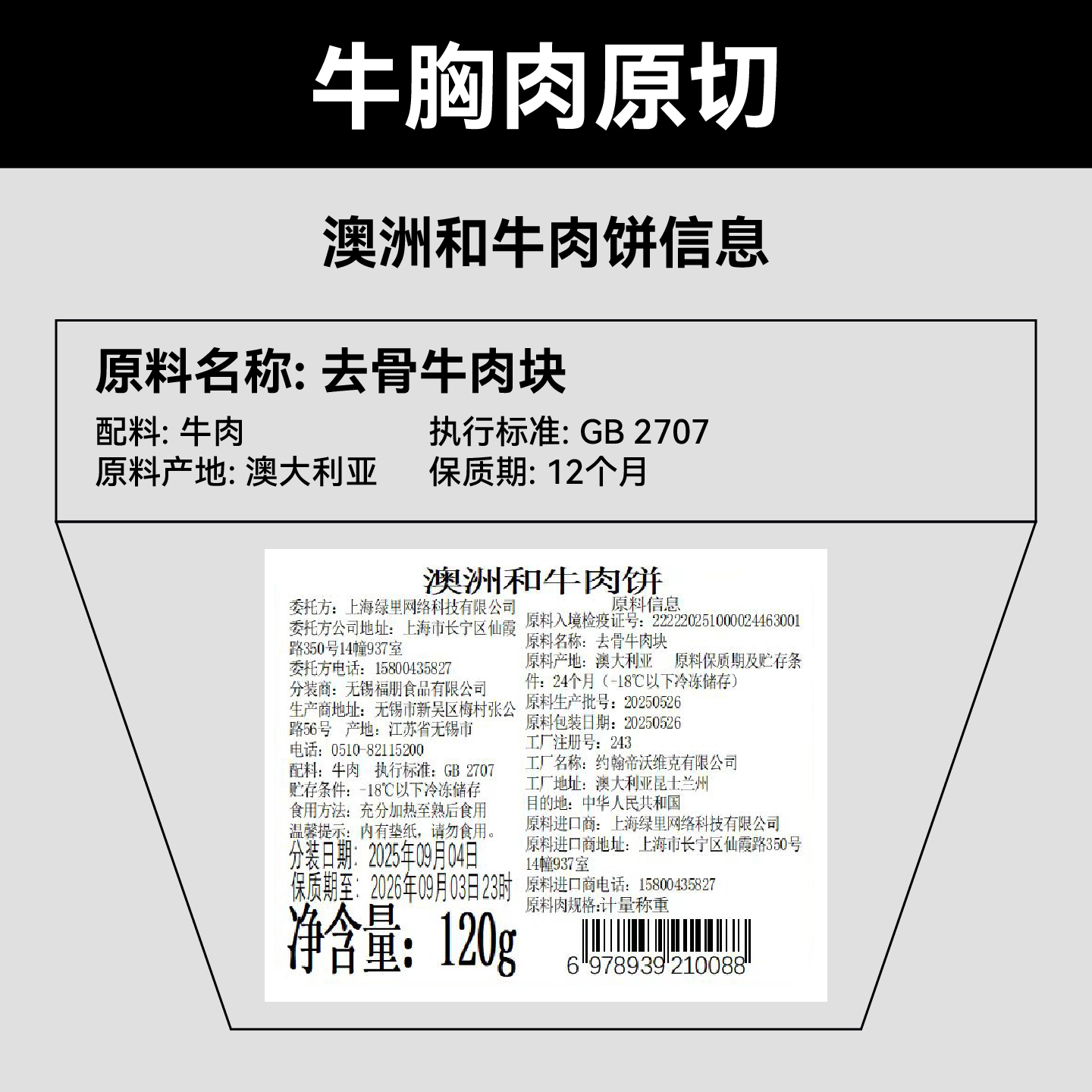 澳洲和牛肉饼进口谷饲原切牛肉120g纯牛肉厚牛堡儿童汉堡肉饼10片
