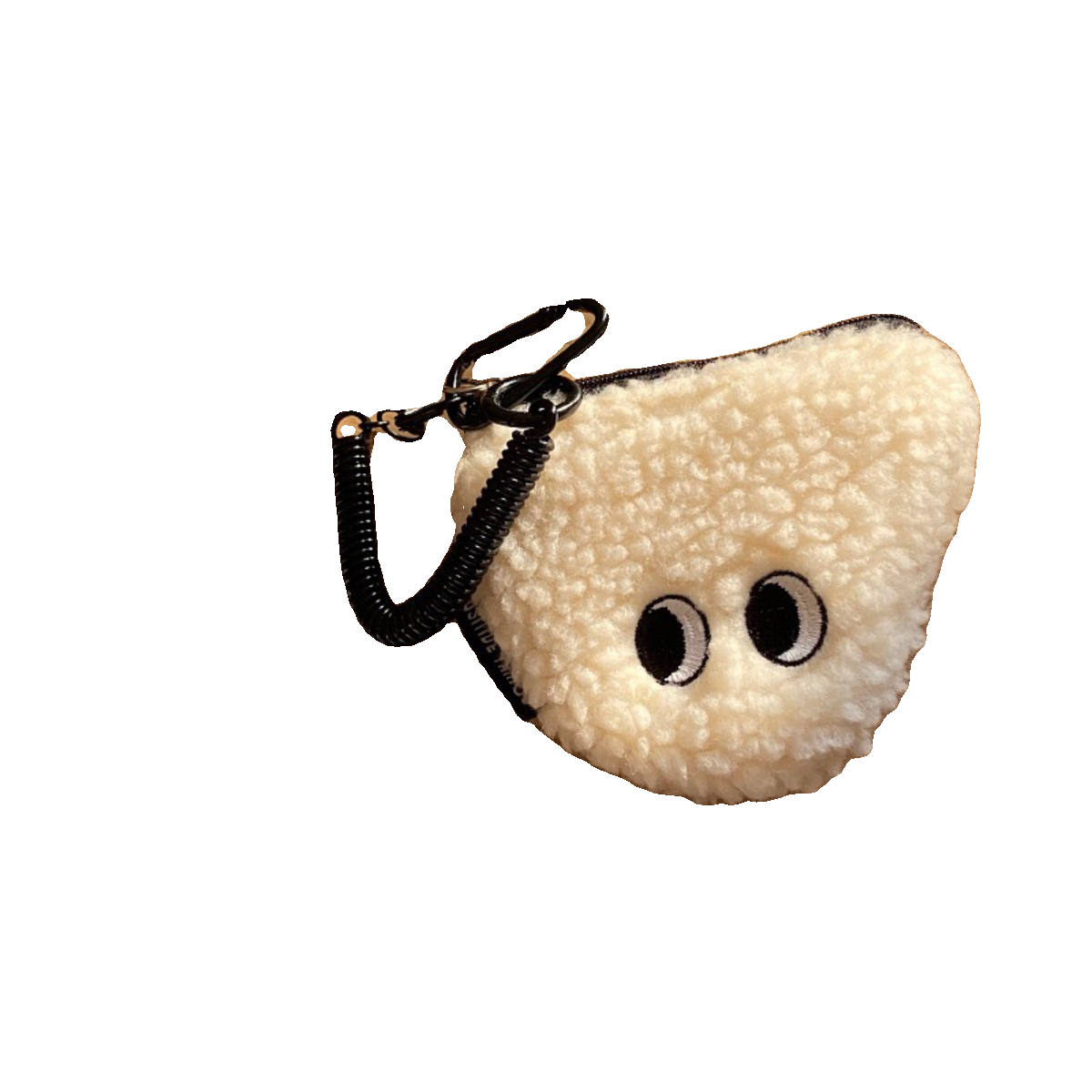 可爱大眼睛饭团零钱包迷你卡通羊羔绒耳机包挂件银行卡毛绒收纳包