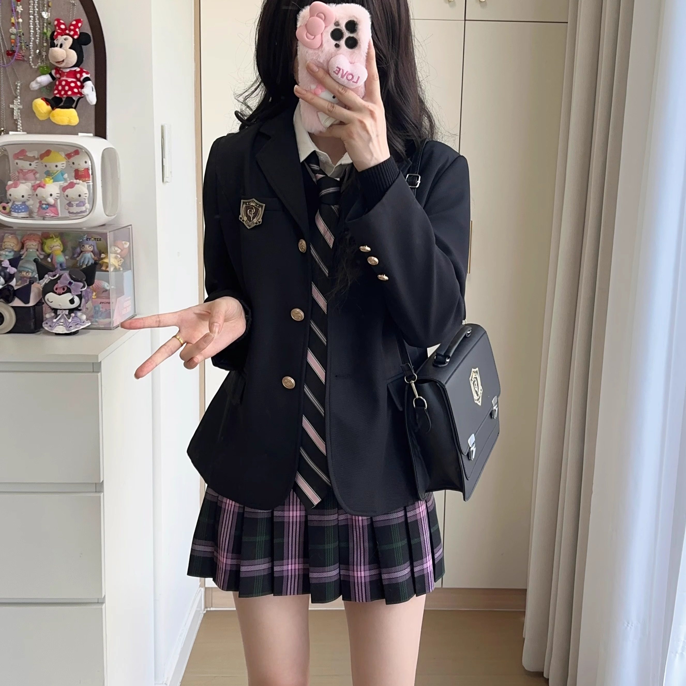 【初町野】小野高JK制服黑色西服外套秋冬学院学生格裙女西装套装