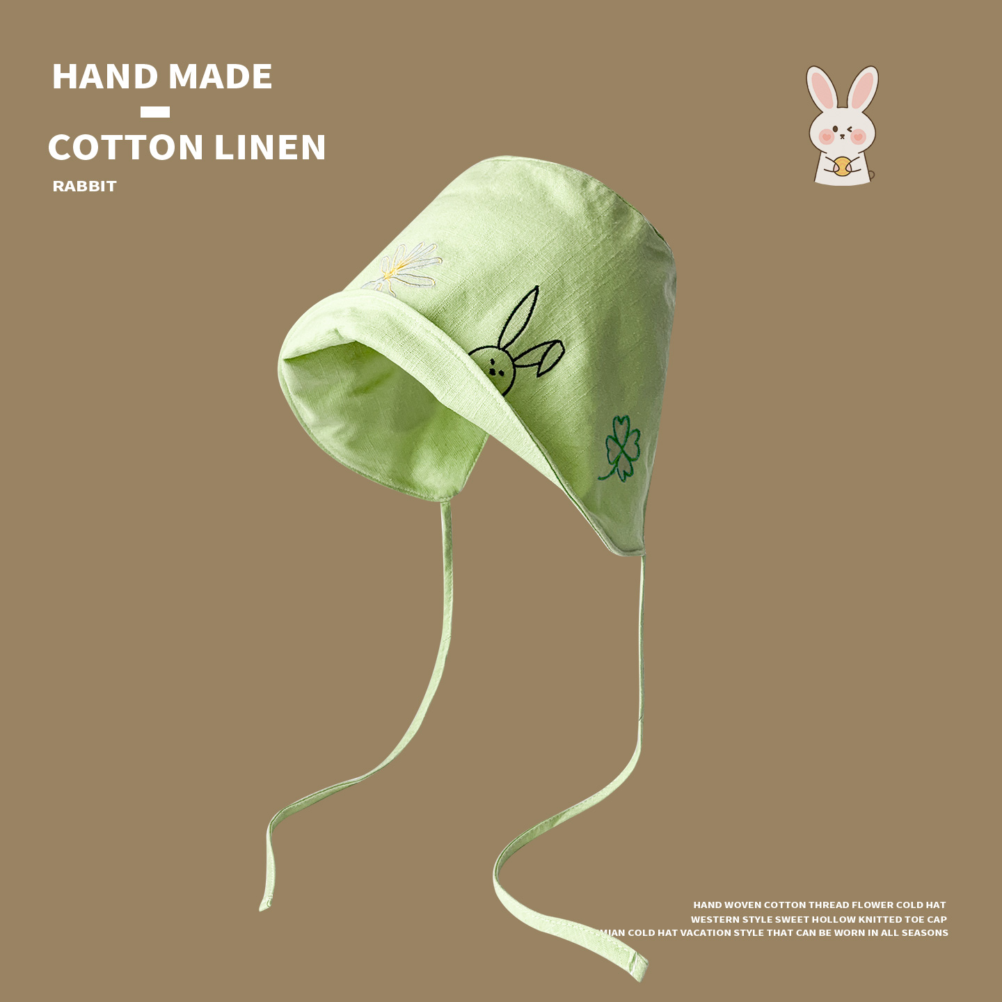 波奈特帽刺绣绑带渔夫帽子女夏季薄款透气遮阳防晒百搭显脸小盆帽