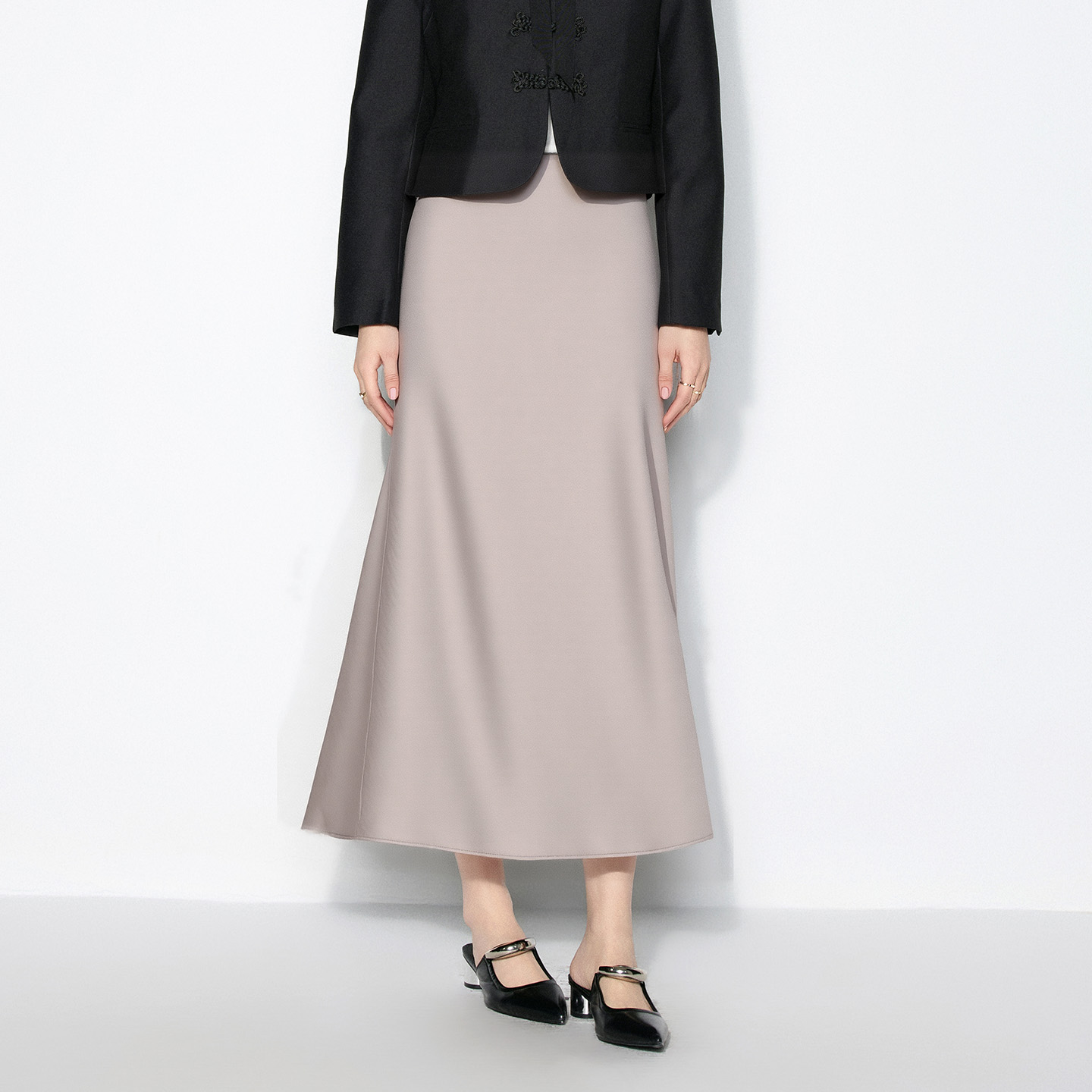 马天奴春秋女装香槟色醋酸混纺鱼尾修身半身裙半裙子垂坠气质时尚
