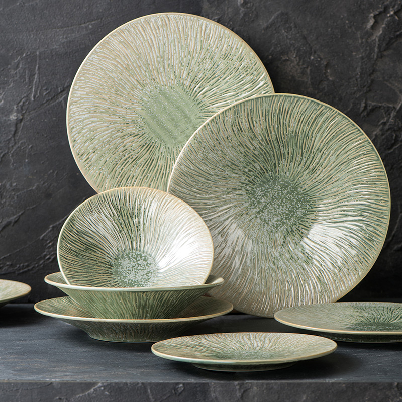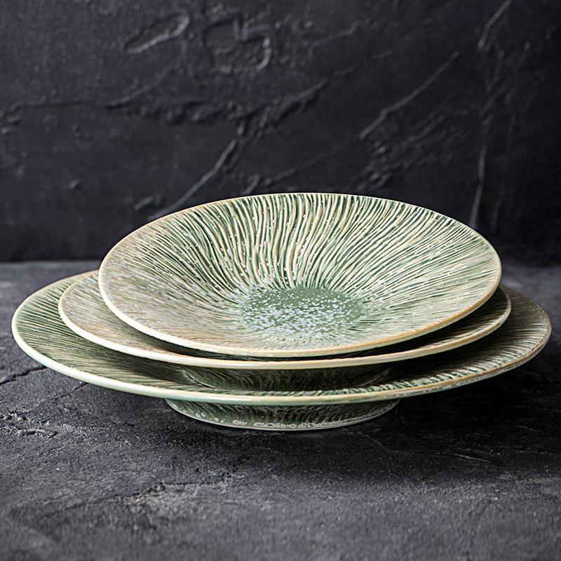 窑变绿色陶瓷盘子碟子日式餐厅商用餐盘菜盘创意牛排盘意面盘平盘