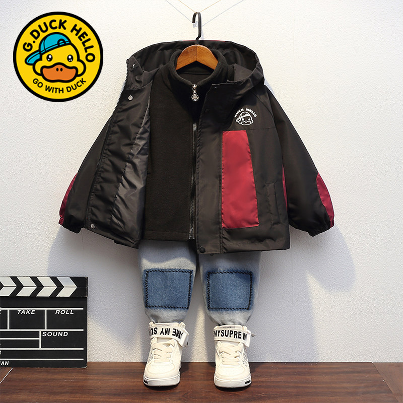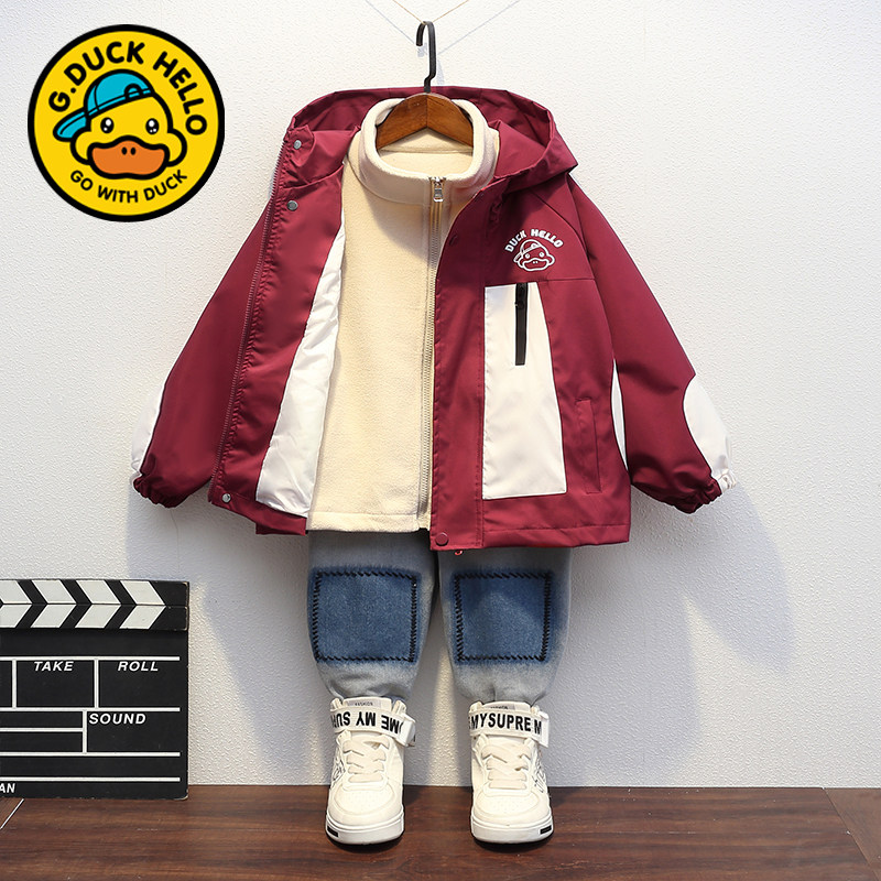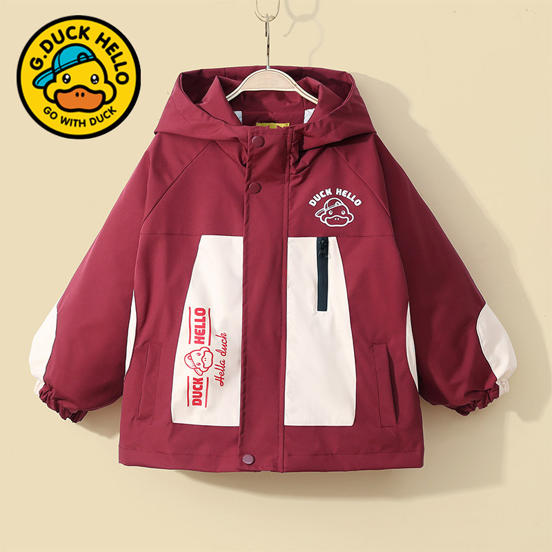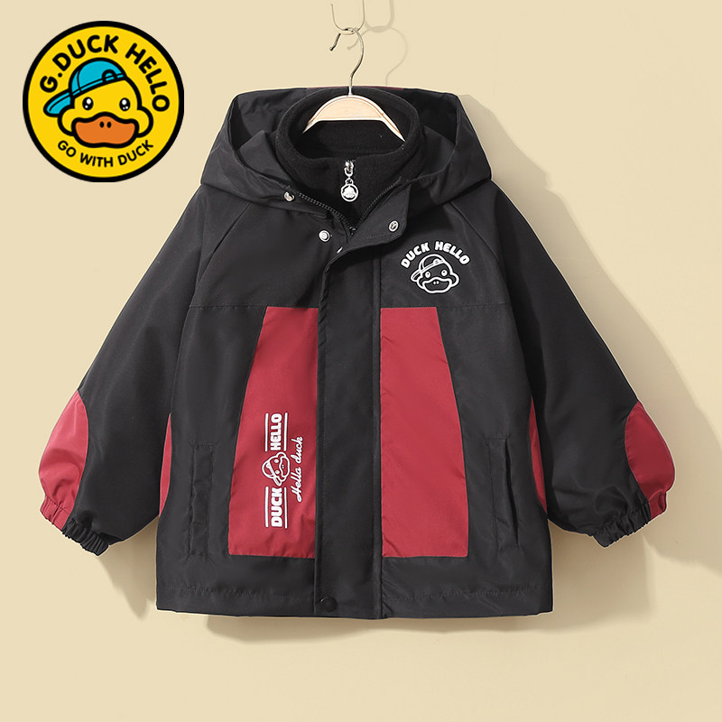 哈罗小黄鸭儿童春秋装外套中大男女童三合一冲锋衣防风薄款两件套