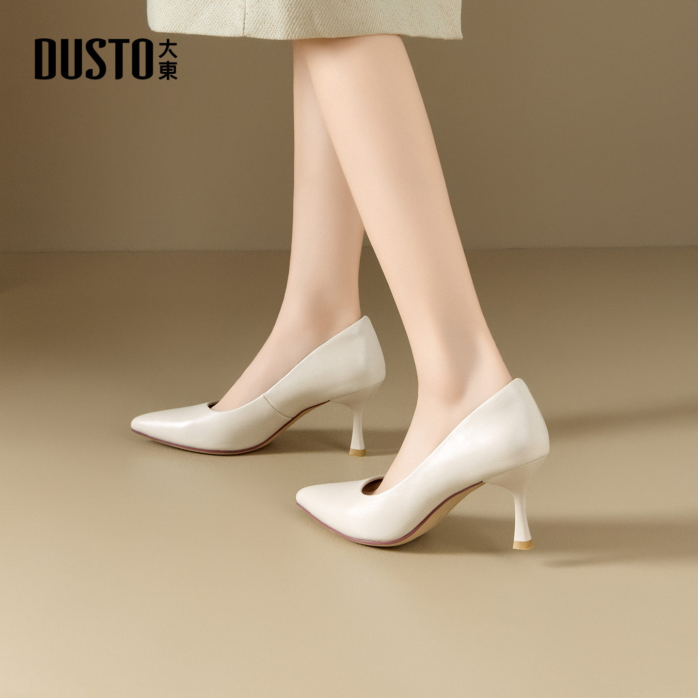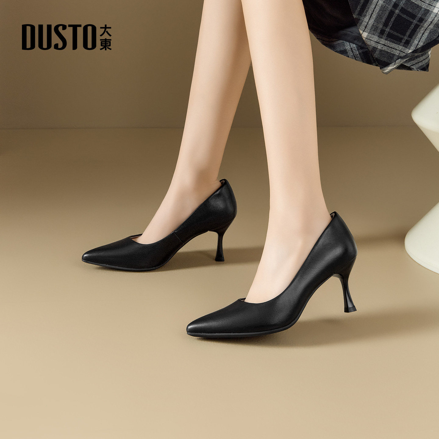 大东浅口女单鞋2025秋季新款时尚尖头正装女鞋通勤鞋细高跟小皮鞋