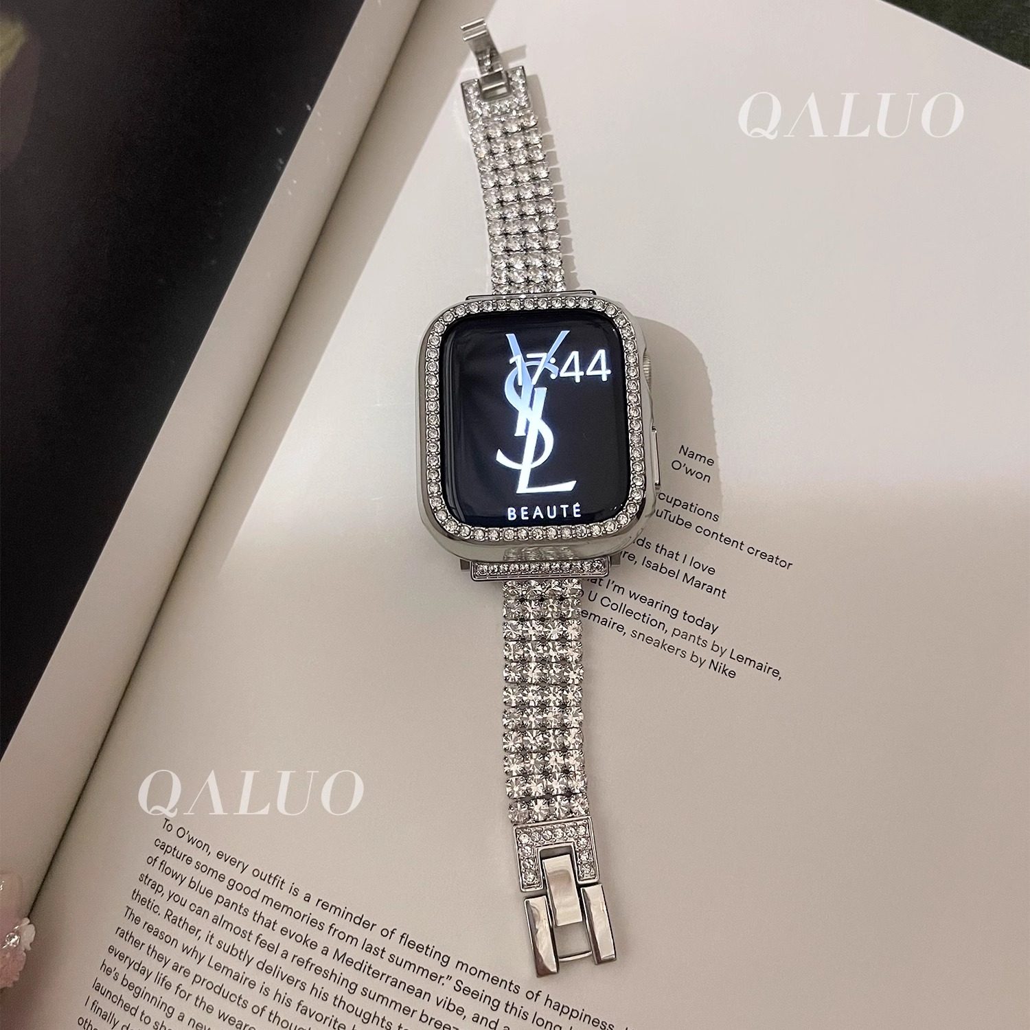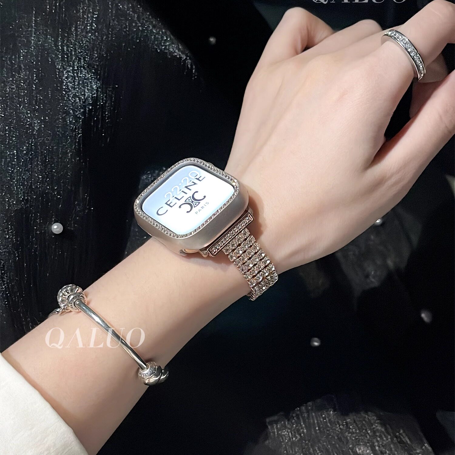 QALUO春夏新款blingbling高级感镶钻表带适用apple watchS11/S10表带iwatch9苹果手表se87654代41/45mm小众女