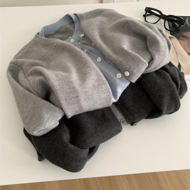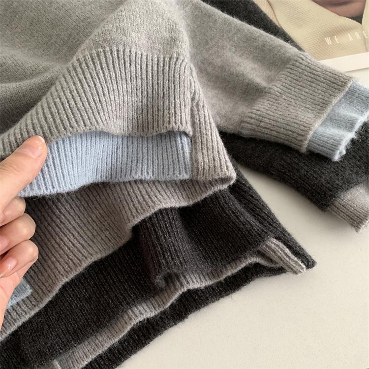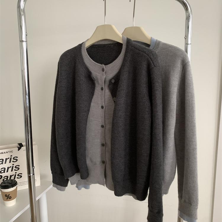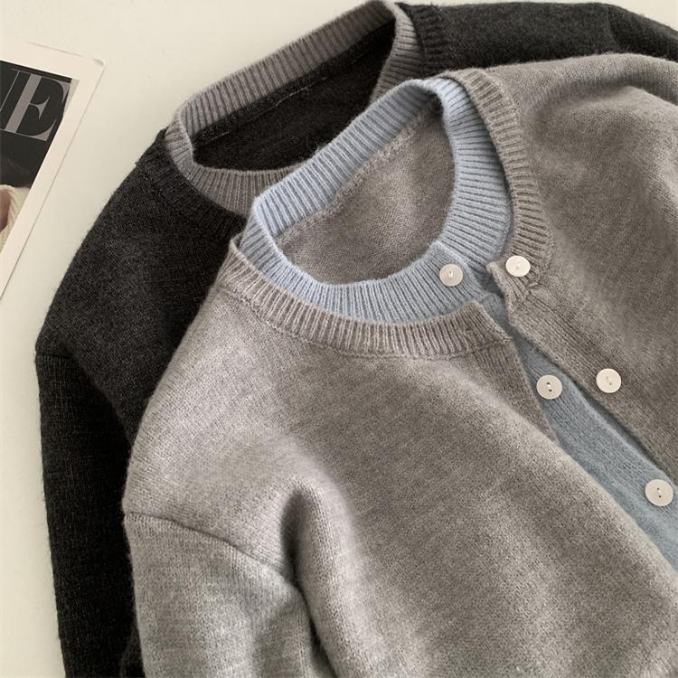 气质简约撞色假两件针织开衫女韩系复古洋气百搭双层扣毛衣外套秋