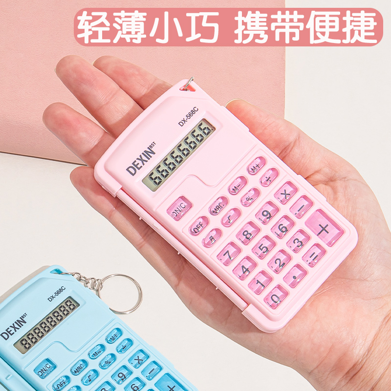 迷你小计算器钥匙扣翻盖学生专用小学儿童款学习高颜值随身可爱计算机便携式小型小号折叠款挂件玩具计算机器