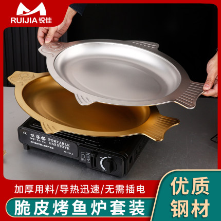 脆皮烤鱼盘卡式炉烤鱼炉鱼形烤鱼盘商用燃气便携式脆皮烤鱼专用炉