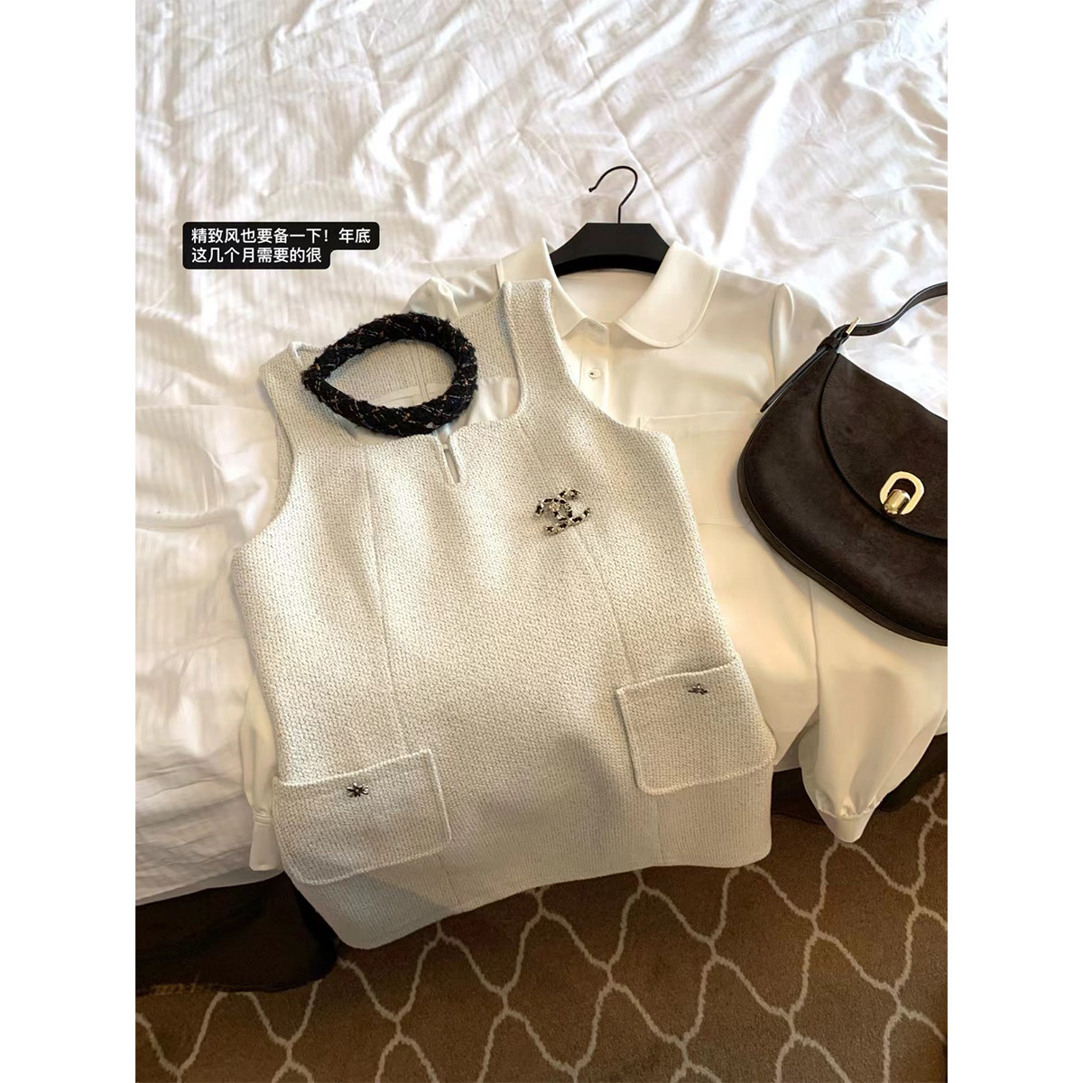早秋节日季很需要它~轻松精致 长短版小香背心裙 编织方领背带裙