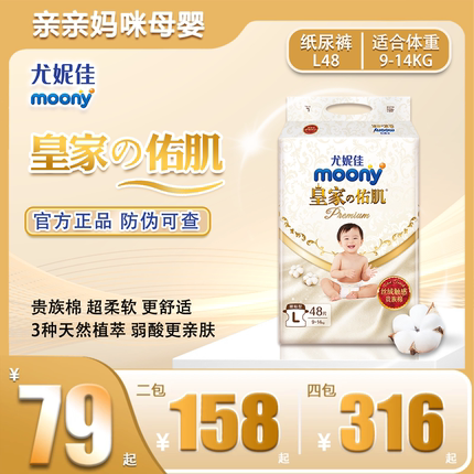 日本moony尤妮佳皇家佑肌纸尿裤NBSML贵族棉婴儿尿不湿拉拉裤XXL