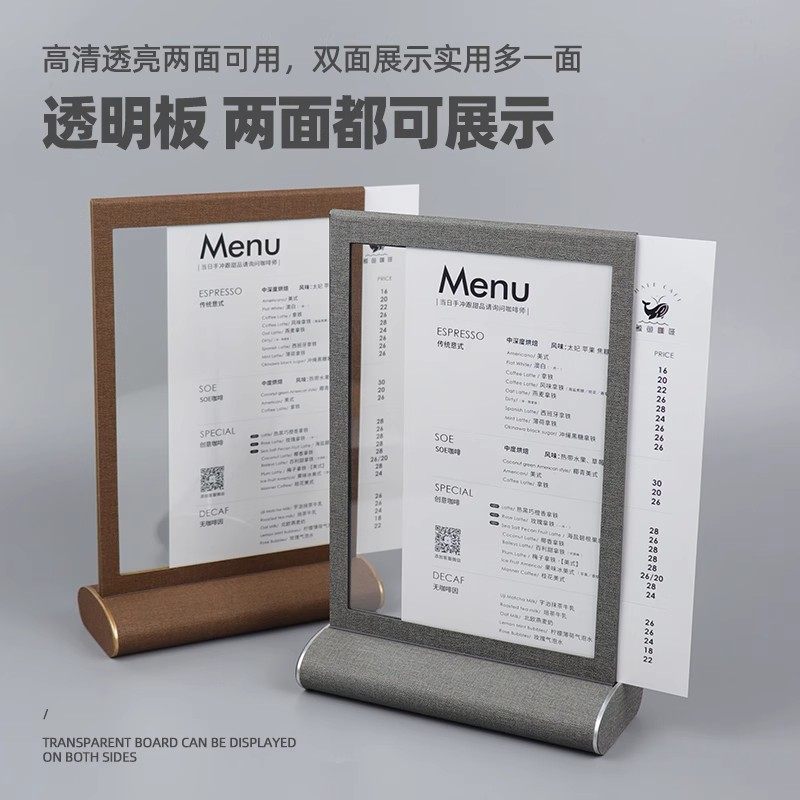 A4双面价目表桌牌台架酒水牌奶茶皮质台卡高档广告台签架家具价格牌创意价展示牌透明立式个性标价牌餐牌台卡