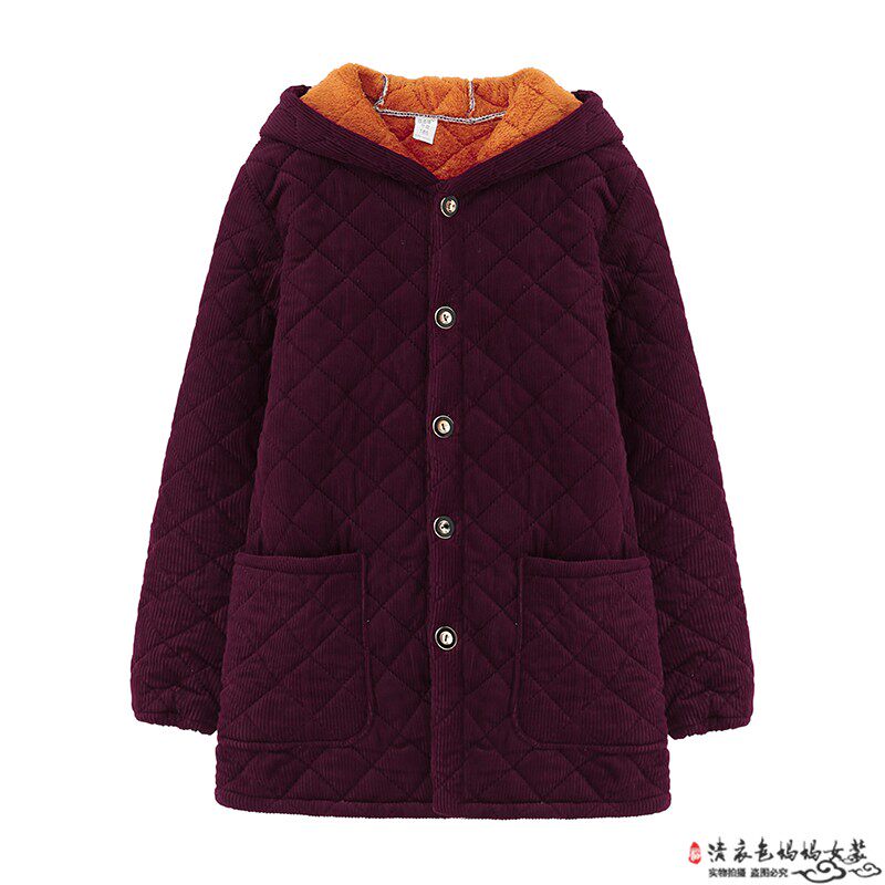 中老年棉衣女冬中长款时尚加绒加厚罩衣妈妈大码保暖外套奶奶棉袄