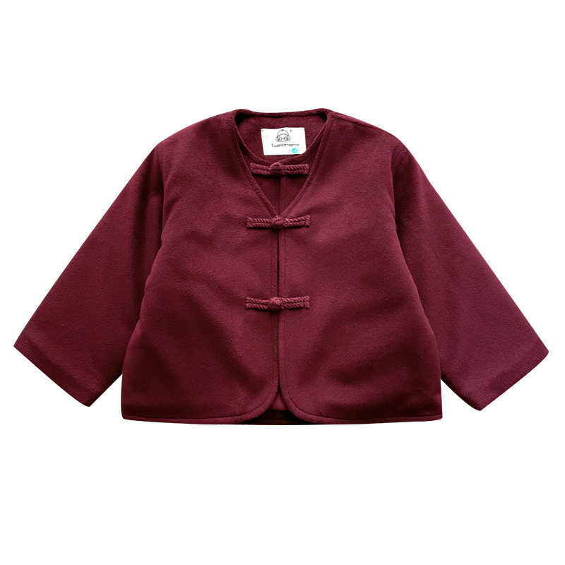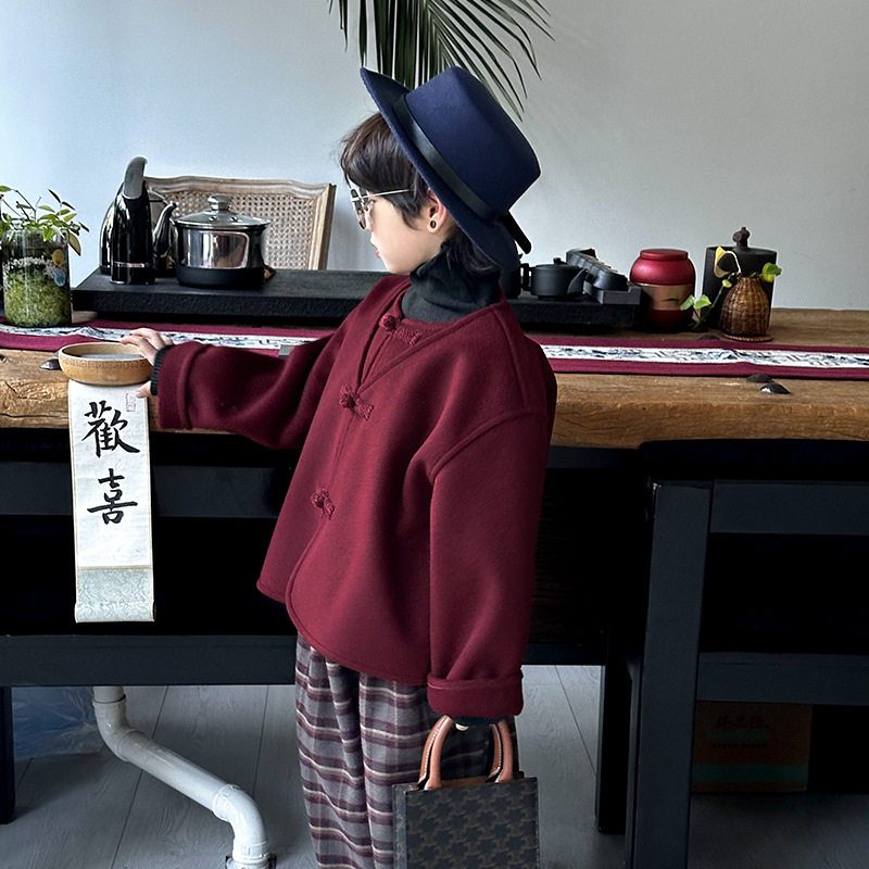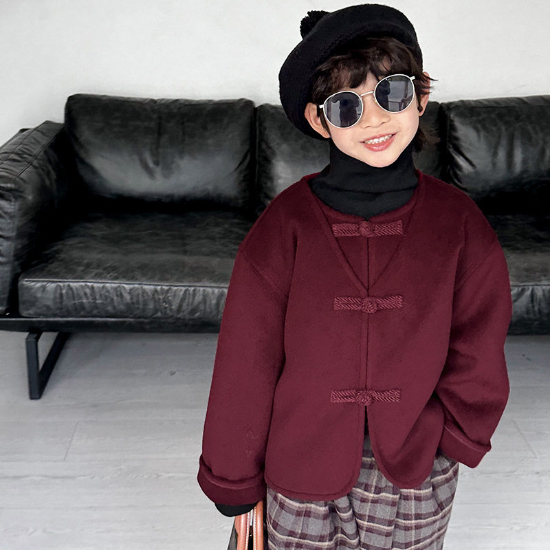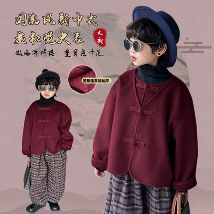 2025冬新款儿童呢子大衣冬装儿童毛呢外套新款新中式盘扣红色上衣