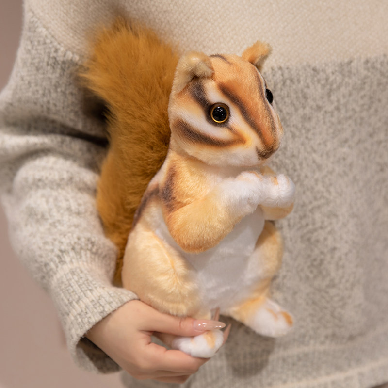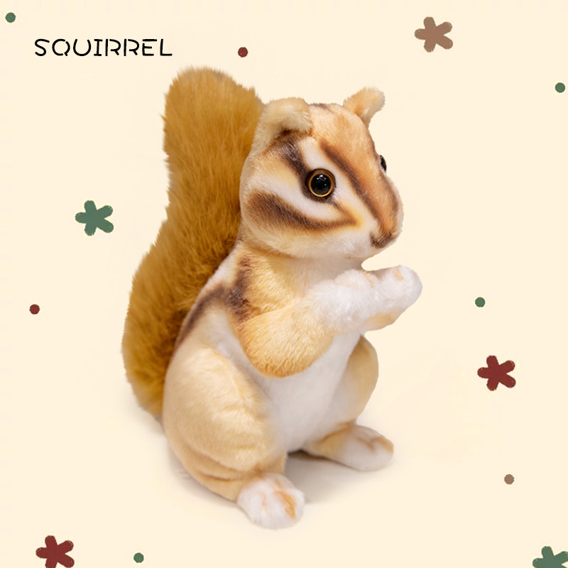 仿真条纹松鼠毛绒玩具公仔小动物玩偶道具宝宝认知陪睡幼儿园礼物