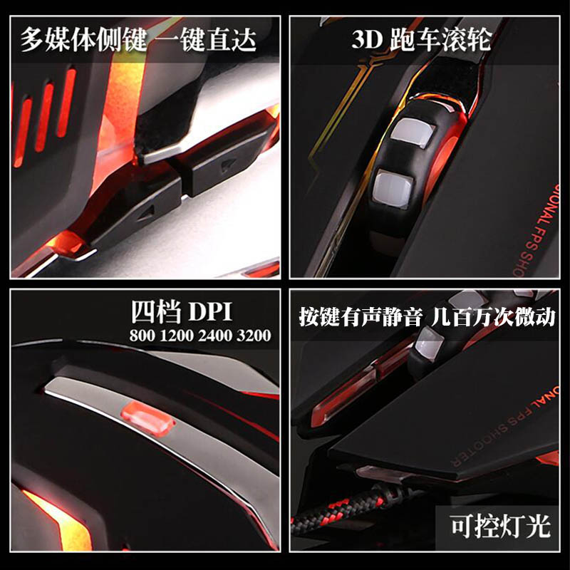冰典牧马人机械鼠标有声电竞台式笔记本游戏宏编程有线办公静音