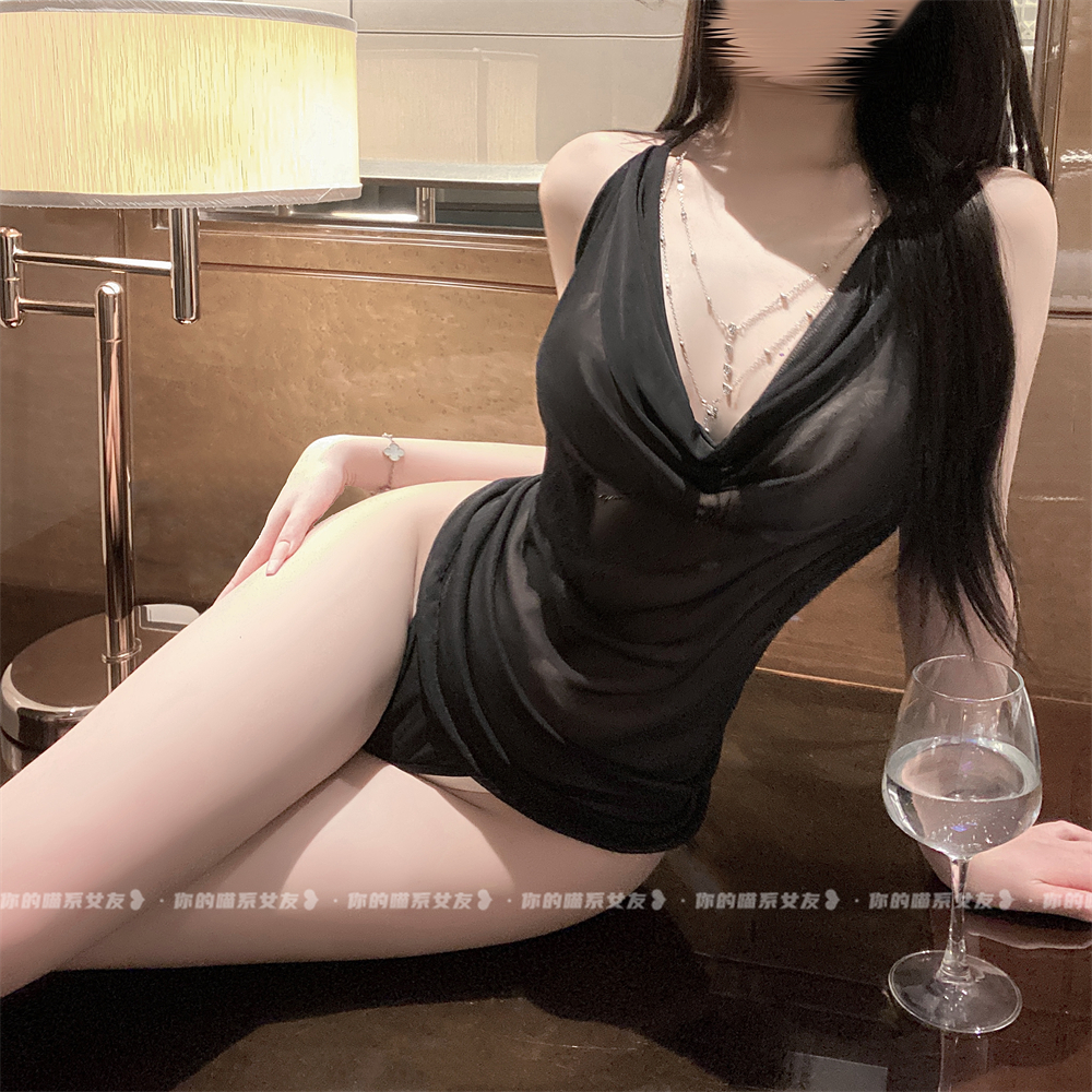 喵:纯欲诱惑绑带肚兜睡裙网纱透视情调荡领挂脖套装性感内衣制服