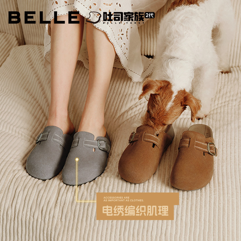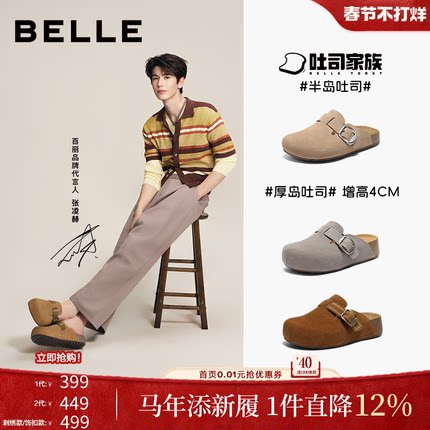 张凌赫同款百丽女半岛吐司厚底增高勃肯鞋包头可外穿拖鞋D5W1DB预