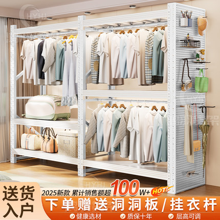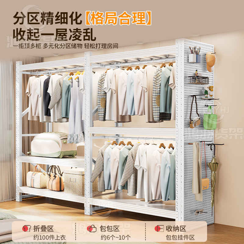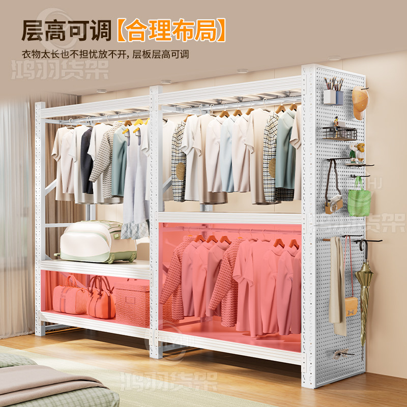 货架衣柜洞洞板开放式衣架卧室收纳柜子简易组装落地置物架衣帽架