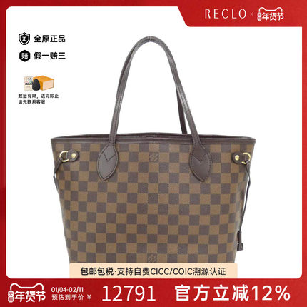中古LV路易威登女包B级9新 Neverfull托特包棋盘格单肩包